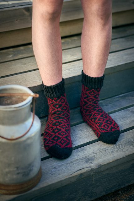 Ruadaja - Toimelias sukka on perinteinen karjalaismallinen sukka, joka on kokonaan kirjoneuletta ja siten kestävä, ryhdikäs ja täynnä perinnettä.